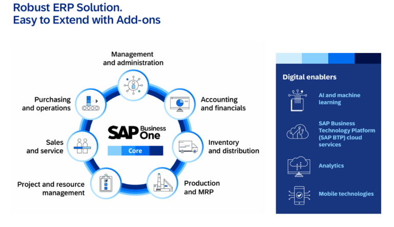 SAP Business One is designed to grow with SMBs, offering flexible deployment options and a range of add-on modules to meet changing business needs. This enables SMBs to scale their operations without having to switch to a new system.